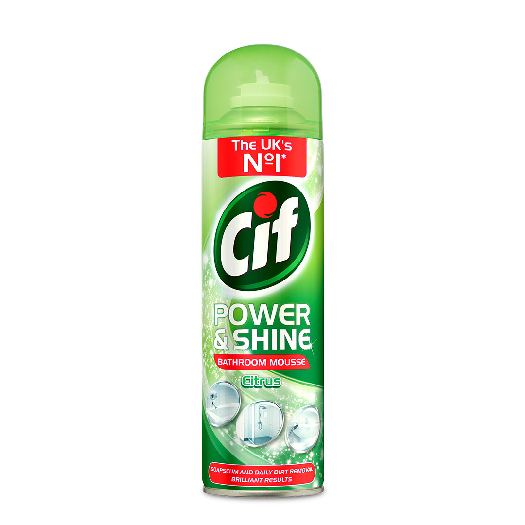 Cif Power & Shine Mousse easily removes soap scum, toothpaste, and other bathroom dirt, so you can enjoy the beauty of your bathroom again. You’ll love the sparkling finish that Cif Citrus Mousse leaves on the plastic, enamel, and chrome surfaces in your bathroom. Its zesty scent will freshen up your bathroom, making it smell as beautiful as it looks!